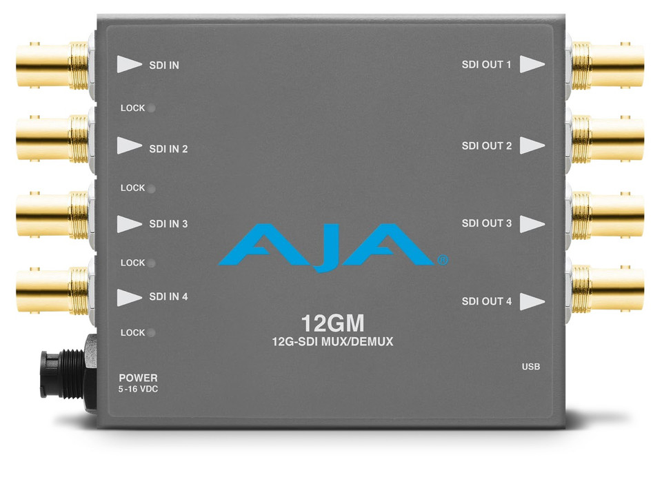 12GM is a compact SDI transport Mini-Converter that enables 12G-SDI to quad link 3G-SDI and quad link 3G-SDI to 12G-SDI conversion. The muxer/demuxer supports 4K, UltraHD, 2K, HD and SD workflows and conversions from quad link SDI signals to single link SDI signals, and vice versa at 12G, 6G, 3G and 1.5G bit rates, as well as Dual-Link and Dual-Stream conversions. Both Square Division (Quadrant) and Two Sample Interleave (2SI) input and output mappings are supported.