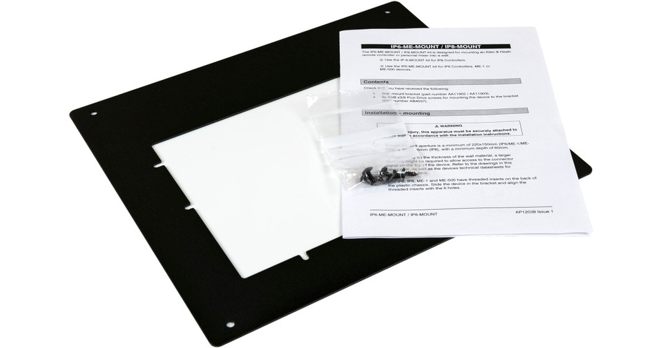 The IP6-ME-MOUNT / IP8-MOUNT kit is designed for mounting an Allen & Heath remote controller or personal mixer into a wall.