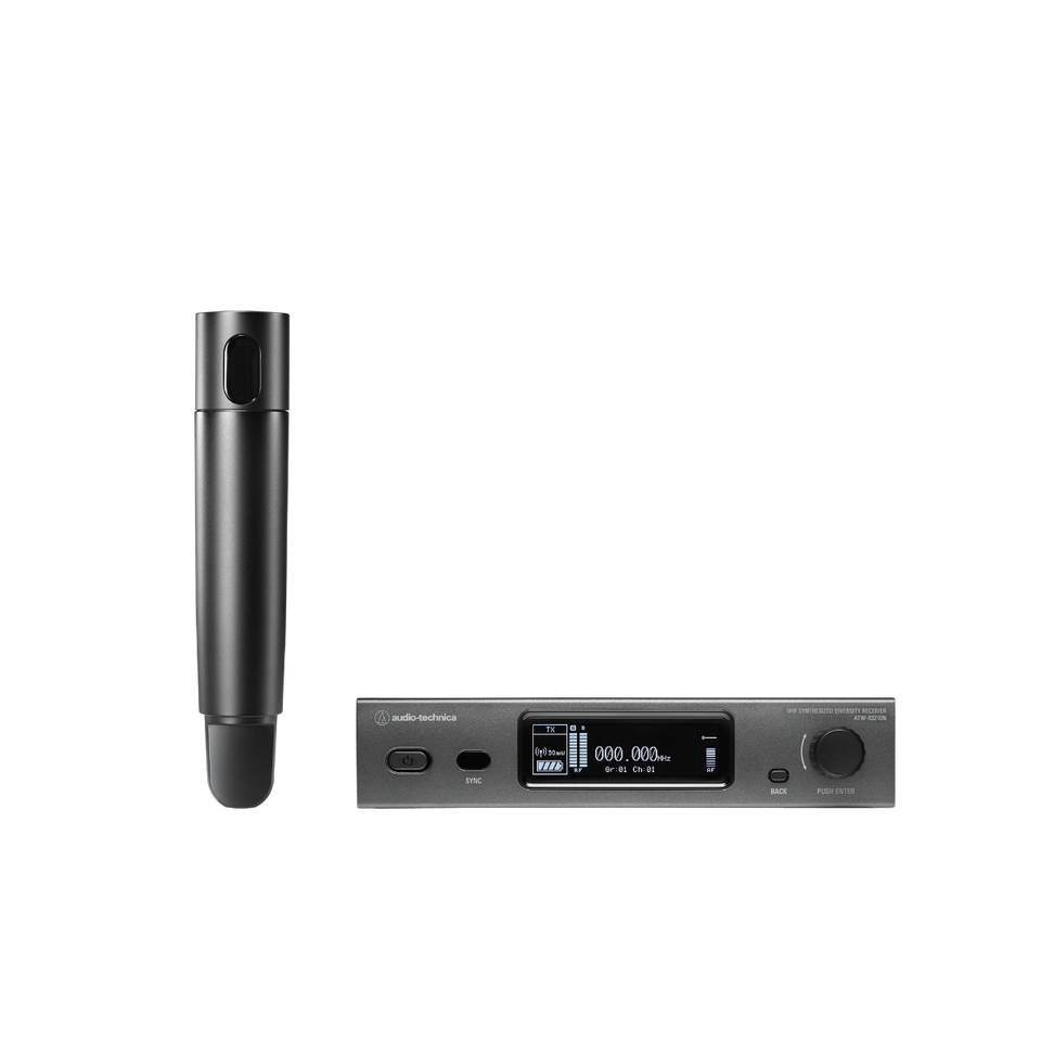 ATW-R3210N network-enabled receiver and ATW-T3202 handheld transmitter (handle only, capsule sold separately).