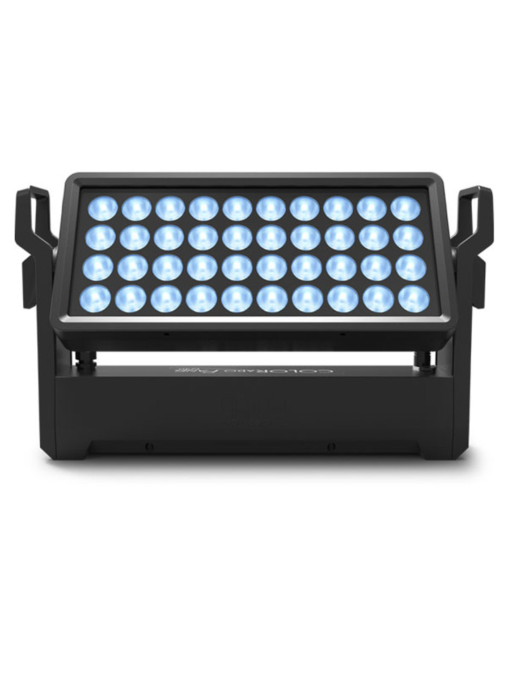 COLORado Panel Q40 is a powerful IP65-rated rectangular wash light that features 40 15 W RGBW LEDs capable of flawless edge-to-edge color mixing. This rugged indoor/outdoor unit can be manipulated through adjustable beam angles and includes a magnetic flood filter to produce a wider, but still even area wash. Its outdoor rated power and data connectors allow for easy connections without propriety cabling. Control it as you see fit with W-DMX and RDM.