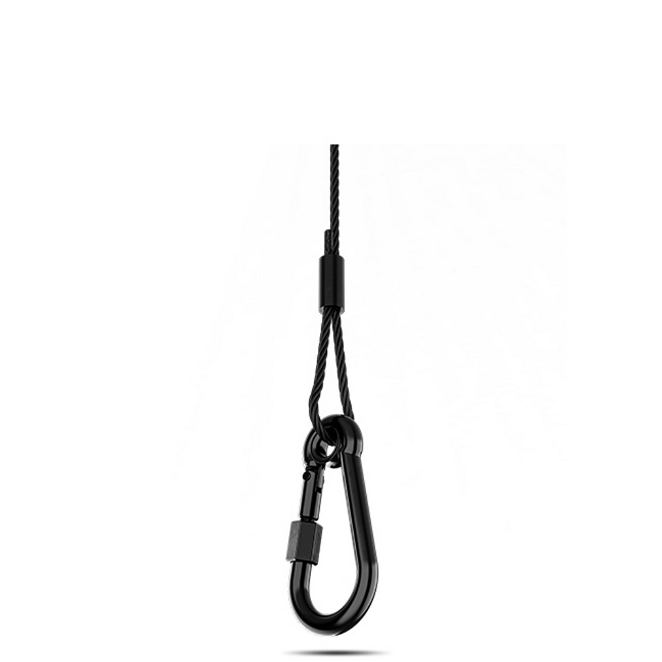 Steel safety cable and carabiner engineered to ensure safety during productions, prevent fixtures from falling, and meet the requirements of many venues. Black finish to hide out of sight in the rig.