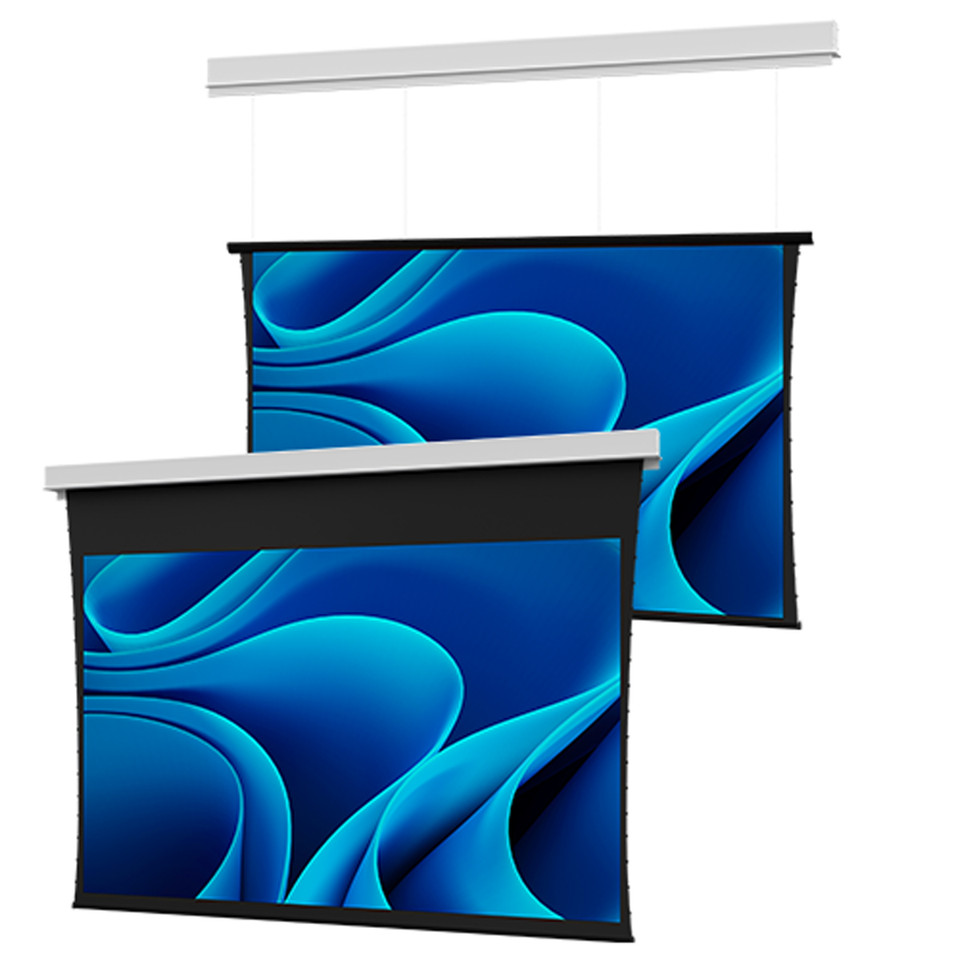 - In tensioned models, TruGuide™ Electric Screen Tensioning System provides optimal viewing surface smoothness