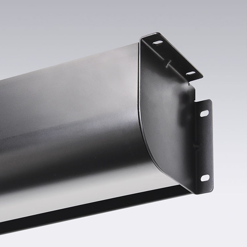 Ideal for conference rooms, classrooms, or home theaters, the economical Premier XL wall- or ceiling-mounted electric projection screen includes a tab-tensioned viewing surface. Draper tab-tensioned screens have perfectly flat viewing surfaces and RF welded tabs for a more durable seal. Premier XL comes housed in a fabricated extruded aluminum case with a curved front and L-shaped back/top cover with an attractive black finish.