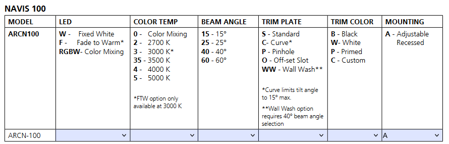 • Color options: Luminaire available in Black only. Trim plates available in white, black, and primed.