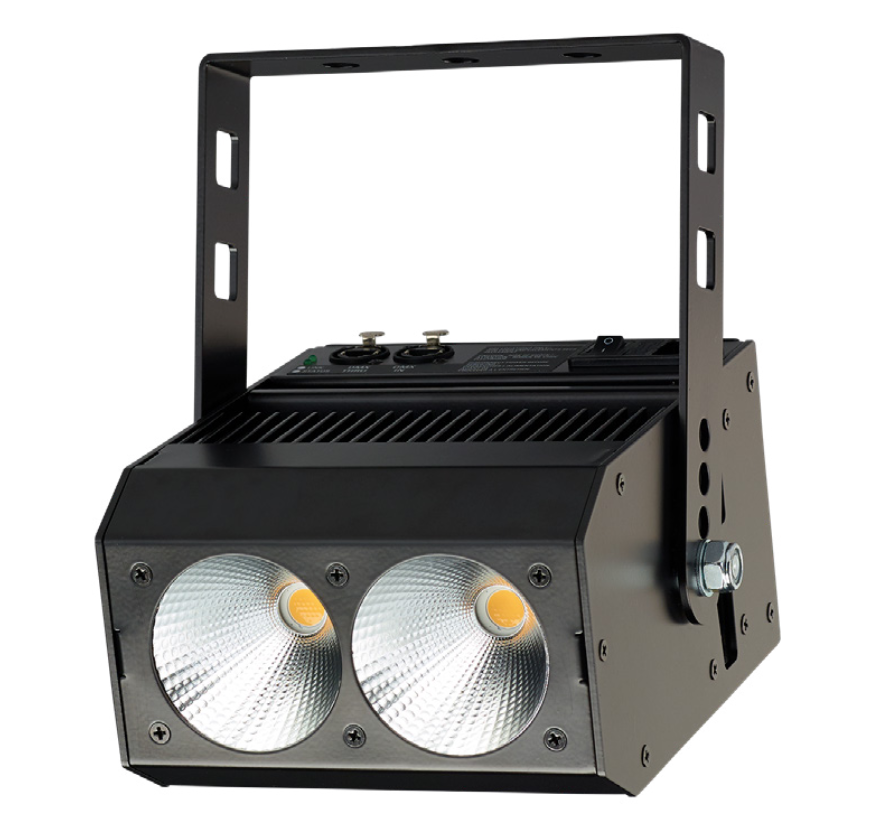 Manufactured from high-grade, powder-coated aluminum and steel,the Pro Two-Cell is entirely convection-cooled, meaning zero noiseemission.The Pro Two-Cell luminaire connects directly to a mains supply and issupplied complete with an onboard power supply. Intensity control isachieved with a direct wired-DMX connection to the luminaire’s RJ45/etherCON connectors.