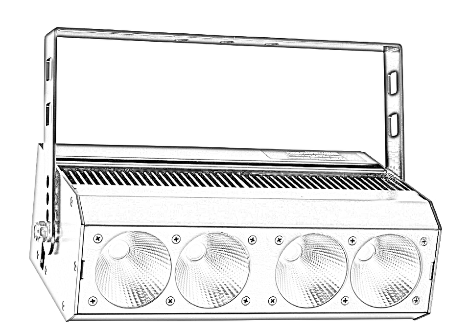 The Pro Four-Cell Linear connects directly to a mains supply andincludes an onboard power supply. Intensity is controlled directlyusing a wired-DMX connection to the luminaire’s RJ45/Etherconconnectors.
