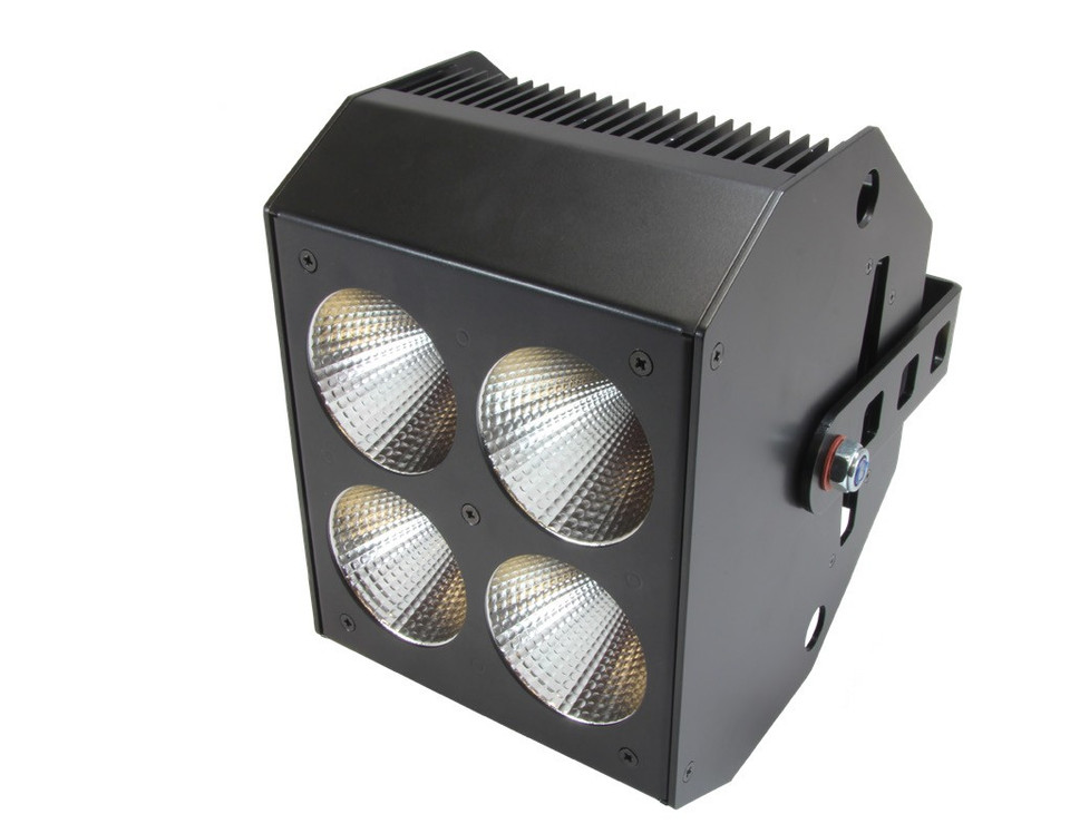 The Pro Four-Cell Square provides medium- to long-throw illumination and is ideal for use in locations where hanging space is limited. The Pro Four-Cell Square is equipped with a yoke offering maximum focusing flexibility. Manufactured from high-grade, powder-coated aluminum and steel, the luminaire is entirely convection cooled, meaning zero noise emission.