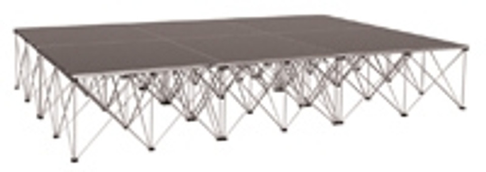 96SQ FT 24" High Drum Riser Platform with Collapsible Risers. Kit consists of 6pcs of 4' x4' carpeted stage platforms and matching 24" risers with hardware.