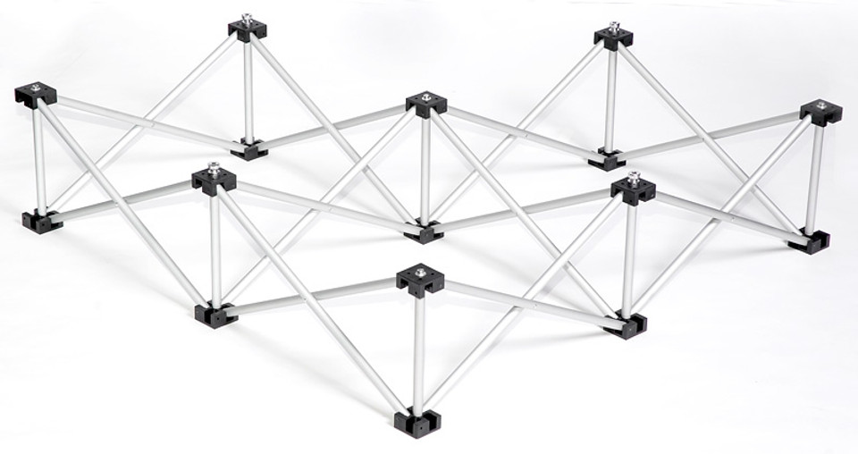 Unique accordion-style folding stage platform riser provides sturdy support for your platforms. Deceptively lightweight and compact, risers lock securely to platforms via our unique platform locking screws. Riser height can also be increased up to 64" high using the optional ISREK riser coupler (for safety, never couple more than two risers).