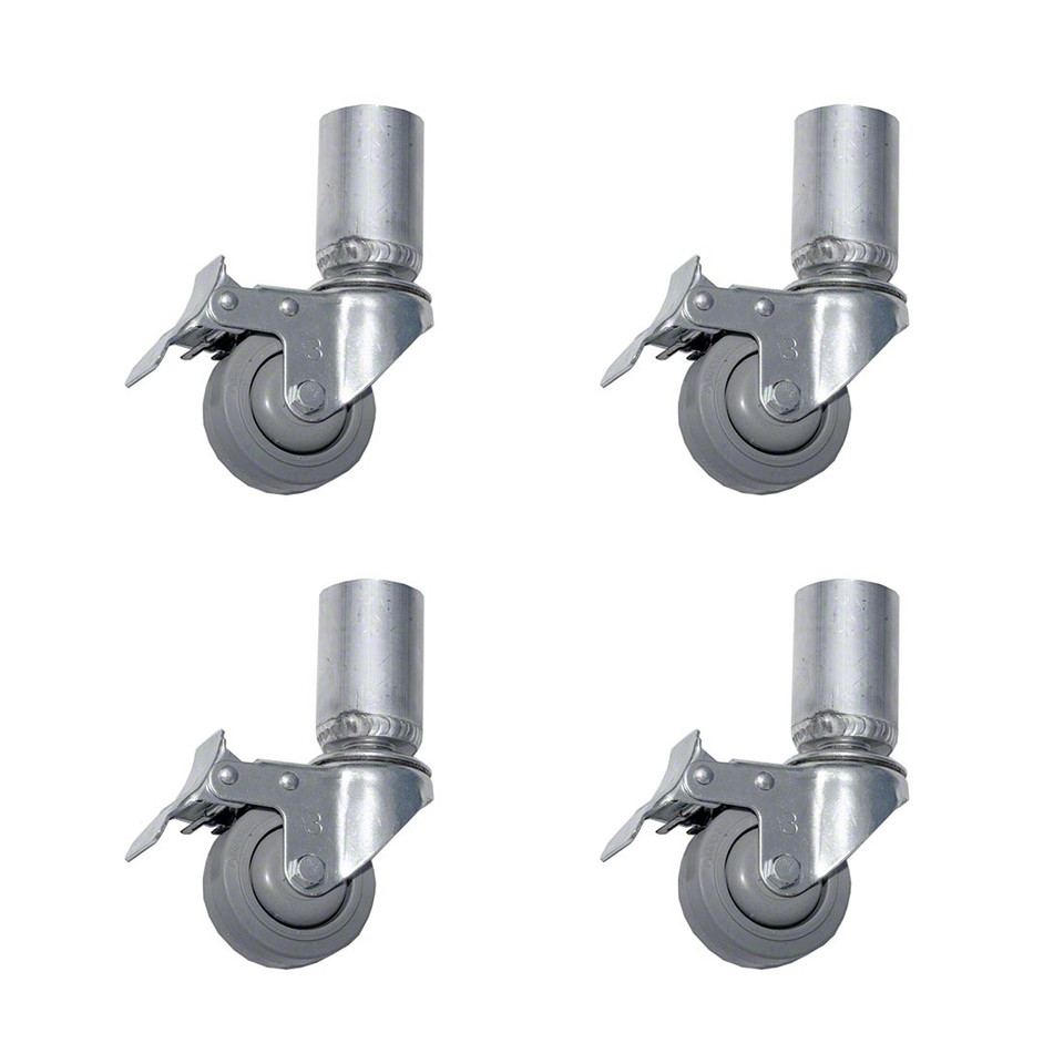 The QuickLock Staging Fixed Stage Legs with Casters are fixed height, 8" high. These legs feature casters for mobility, with optional brakes. The QuickLock mechanism for attaching the legs to the stage platform allows for fast, easy setup; simply insert the leg and close the lock switch to secure leg to platform. It can even be set-up on uneven ground.