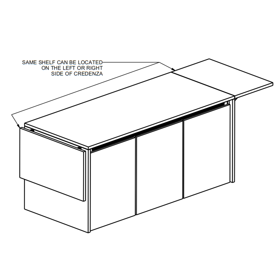 - Side flip-up shelf designed for 27-inch depth C5 HPL Moderno Style Credenzas