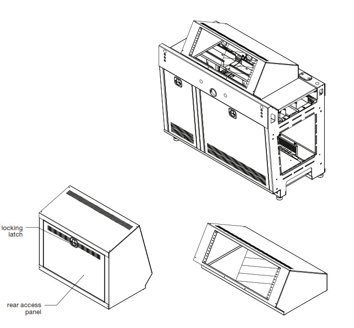 To mount turret racks shall be available with 4 or 9 rackspaces, have a minimum 8-1/2” useable depth, and work with consoles with an 18” deep work surface only. Top mount turret racks shall mount to any 24” section of a 24”, 36”, 48” or 72” bay.