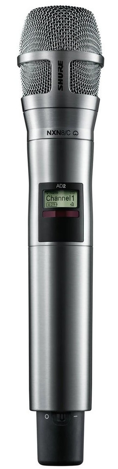 The AD2/N8C is a handheld wireless microphone transmitter compatible with Axient® Digital Wireless Systems that features the Nexadyne™ 8/C cardioid dynamic microphone with Revonic™ Transducer Technology.