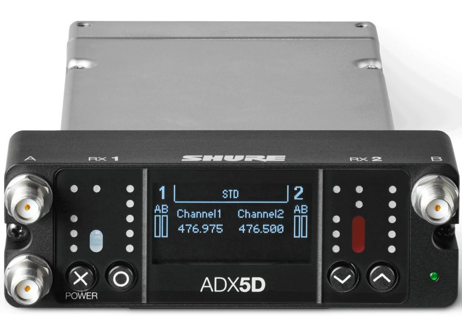 You make your living on a sound stage, in a sports arena, or wherever “on location” takes you. You depend on your wireless system to handle each and every situation with ease. Compatible with all AD series and ADX series transmitters, the Axient® Digital ADX5D dual-channel wireless microphone receiver delivers superior RF performance, spectral efficiency, and transparent audio quality in a portable, slot-in receiver design. Sound and performance that the touring industry has adopted as industry standard is now available to audio professionals in film and broadcast. Wireless pinnacle. Now portable.