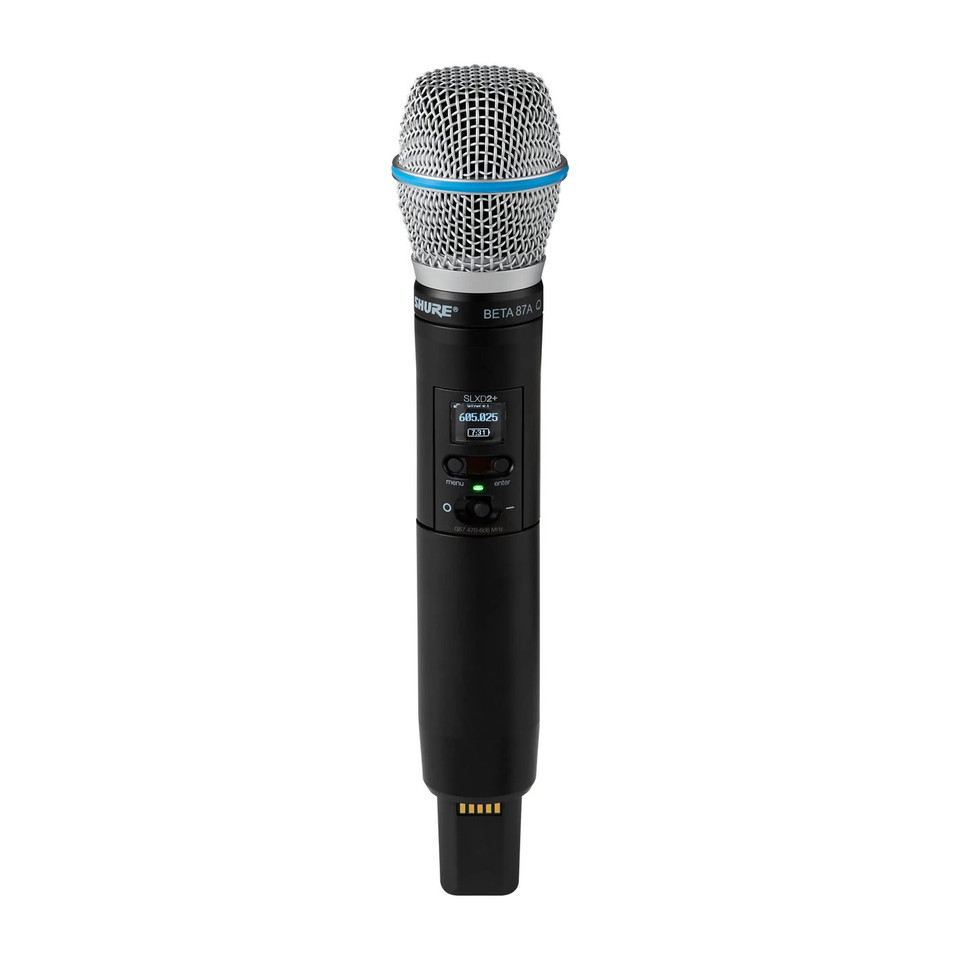 The SLXD2+ handheld transmitter with a Beta 87A® supercardioid capsule delivers wireless clarity and control for live performance. Built on the SLX-D+ platform, it offers transparent 24-bit digital audio with over 118 dB of dynamic range and a wide 138 MHz tuning range for rock-solid RF stability. Once linked, transmitters and receivers stay connected even in overloaded wireless environments, with automatic frequency management ensuring clear transmission at all times.