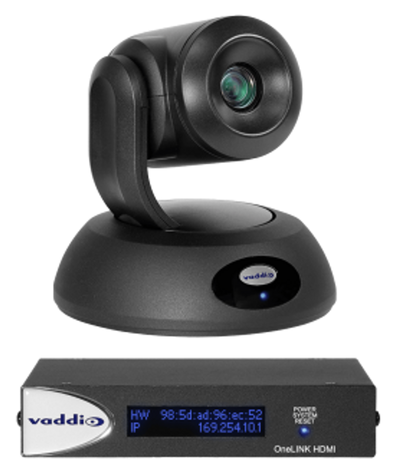 Video outputs include simultaneous HDBaseT, HDMI and IP (H.264) streaming. Connect directly to HDBaseT-compatible devices or pair with Vaddio OneLINK receivers to simplify cabling and extend installation distance.